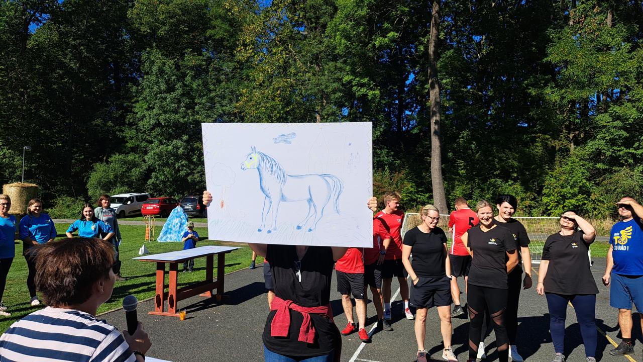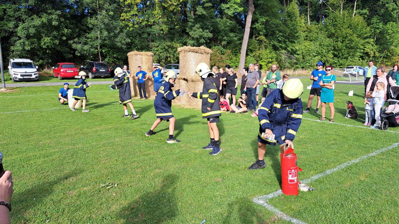 Disciplíny: 1) vytvořit pohlednici obce (velkoformát) tak, aby byla doručitelná na obecní úřad, 2) překážková dráha, 3) zímní radovánky v létě, 4) netradiční hasičký útok, 5) pojídání koláče na čas.